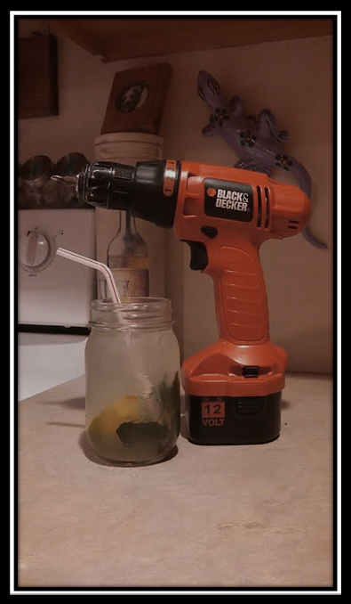 I asked Lisa to leave the power drill out before she left for the baseball game. She just kinda gave me the look, but didn't say anything. Panic, maybe? Mojitos. Tunes. A not-so-graceful girly. Power drill. What could possibly go wrong?