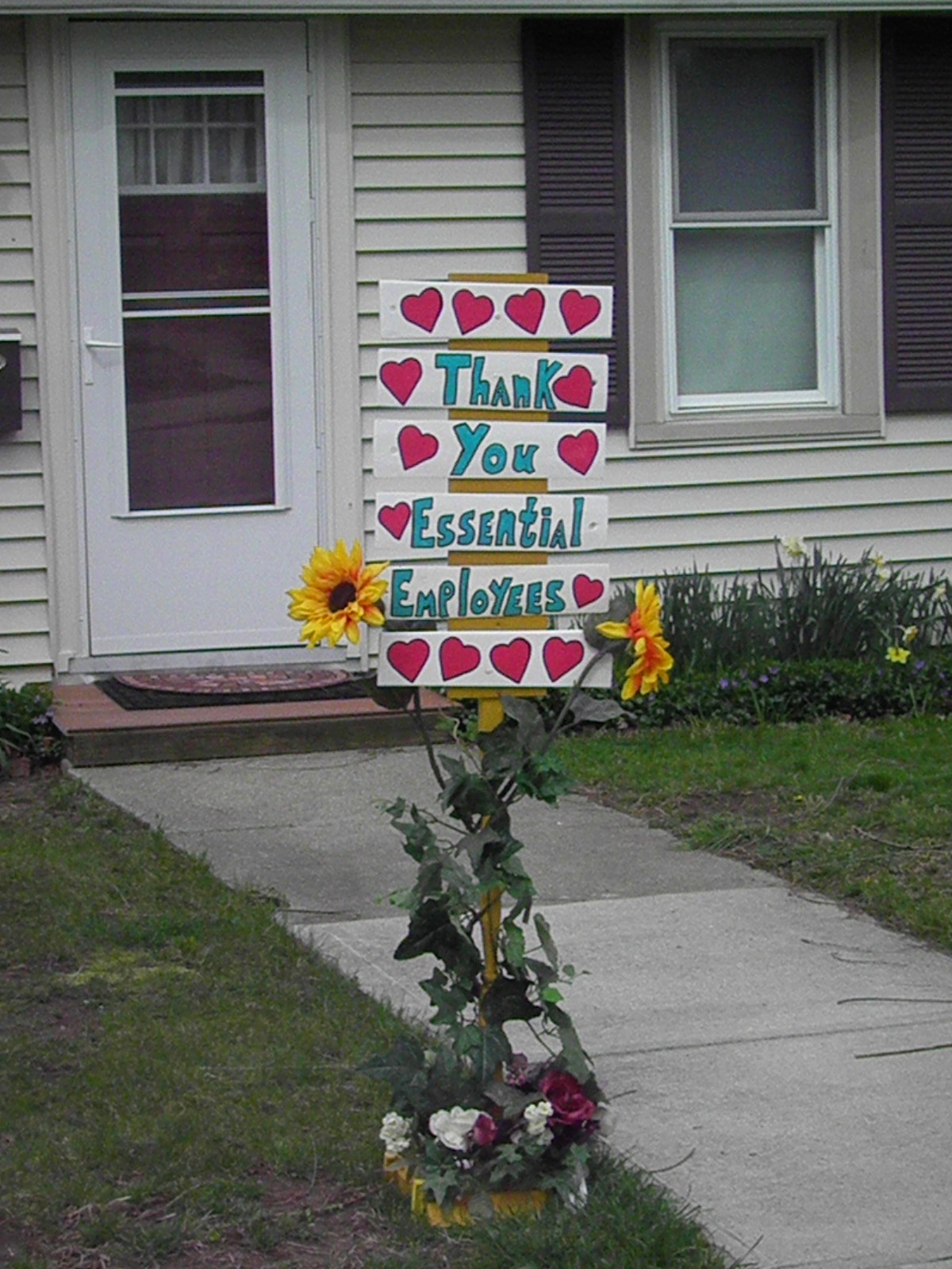 I wanted to do something to extend gratitude to all of the essential employees. A display in our front yard. Because our DIY supplies are running low, I needed to utilize what we already had.